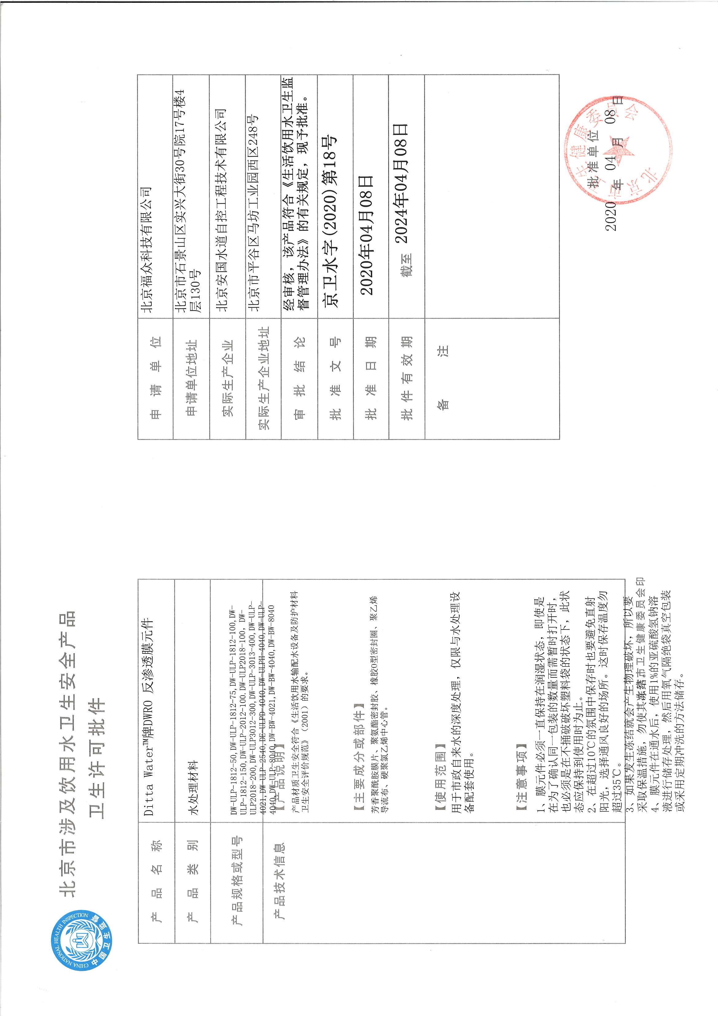 涉水證明--反滲透膜元件